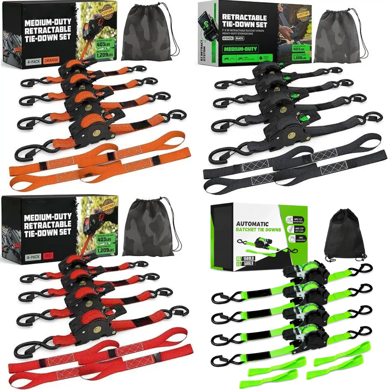 Style4:25MM automatic telescopic tensioner -4-piece set (green)+8-shaped buckle * 4+waterproof bag+neutral