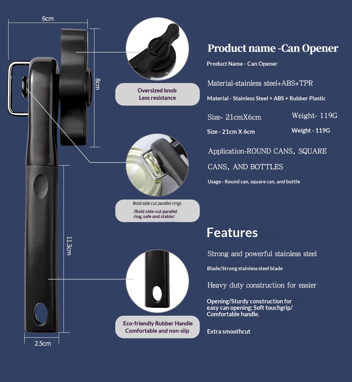 Manual Safety Can Opener Stainless Steel Cutter For Home Use