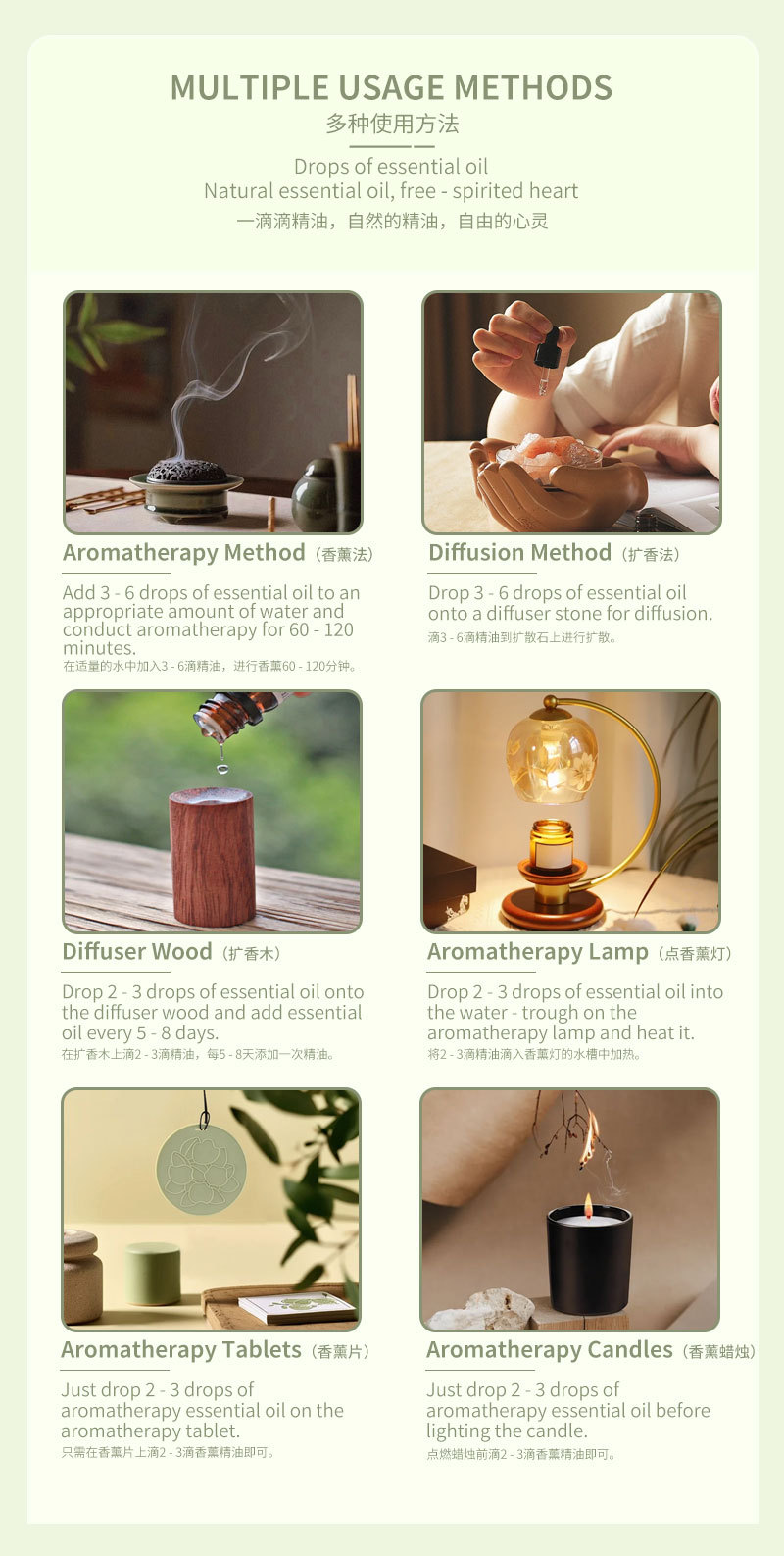 Fragrance: 6-piece Plant Essential Oil Set (Eucalyptus + Lavender + Lemongrass + Orange + Peppermint + Tea Tree)