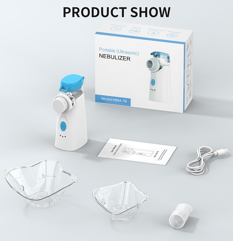 Color: Blue and White (FDA, TÜV, CE, MDR) – Built-in Rechargeable NBM-7B Micro-Net Nebulizer