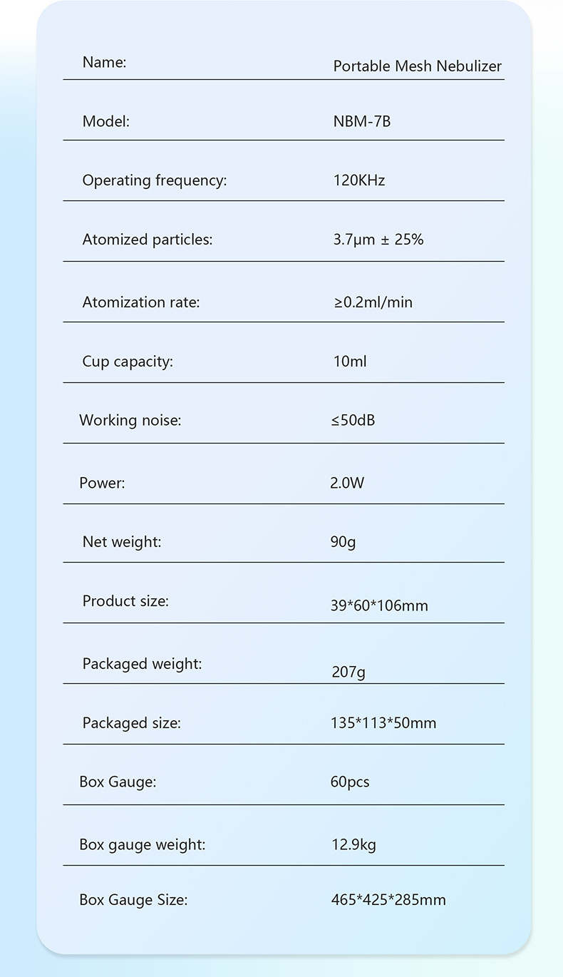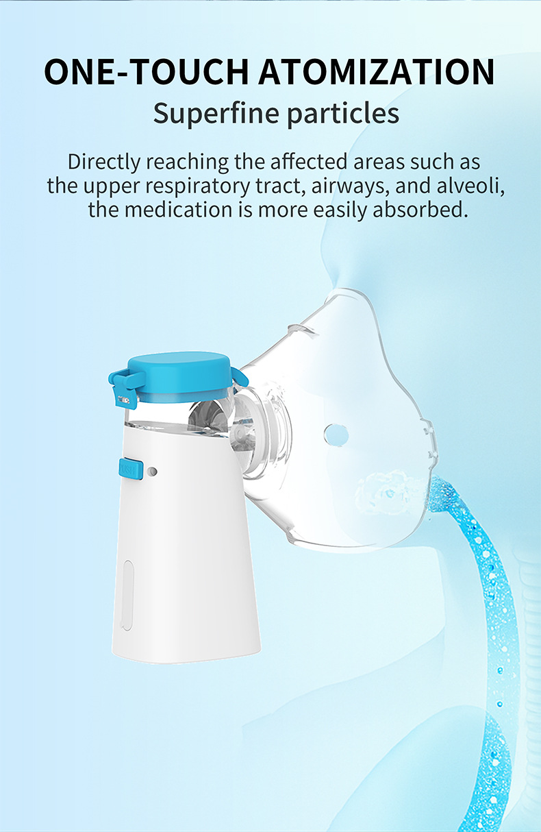 Atomizer*1 + Adult mask*1 + Child mask*1 + Atomizer mouthpiece*1 + USB power cable + Instruction manual*1 + Color box*1